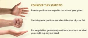 Bill Phillips har en blogg som heter Transformation http://www.transformation.com/ där han på ett bra sätt beskriver portionsstorlek mm, bilden ovan kommer från hans blogg. Enkelt eller hur?