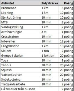 Aktivitetspoäng aktiverat!
