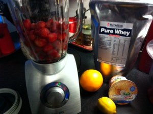 Ingredienserna på bilden är till 2 smoothies. Den är ganska sur/frisk så man kanske vill ha lite Stevia eller liknande. (inte jag dock)