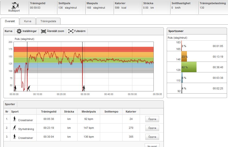 Sedan hoppade jag på crosstrainern och körde 30 minuter steady state. HELT SLUT! Allt skakar!