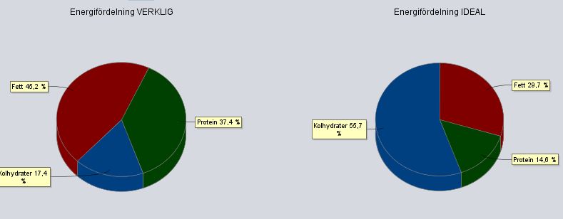 Jag har roat mig med kostregistrering idag.. Om jag tittar på min mat så tycker jag att jag varit duktig, men kolla i kostdiagrammet vad mycket fett det blir i %?