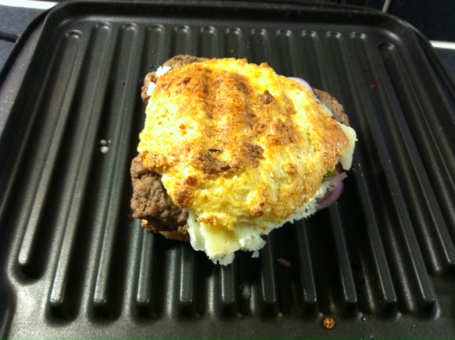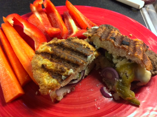 Jag ville ha en varm klämsmörgås så jag gjorde en på brödet jag bakade innan.