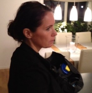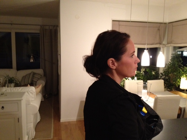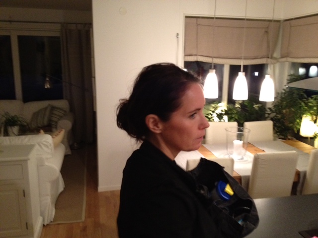 Snyggo! Jag har på mig urtvättade för stora tights med små hål på knät, en urtvättad svart mjukis-klänning, för stor. Kofta för att inte frysa ihjäl. Nog dags att starta en mode-blogg snart! 😉