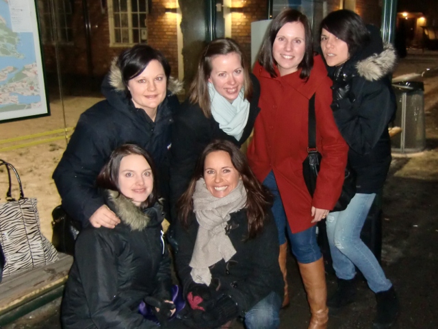 PS 3 Lotta – beige sjal, Beata – ljusblå (?) sjal, Betty – längst till höger, Emma – röd jacka, Therese på huk brevid mig, Louise stående längst till vänster brevid Beata. (Hoppas att det var ok att jag skrev det Louise, övriga har godkänt förutom Betty som jag hoppas är ok med det:-) )