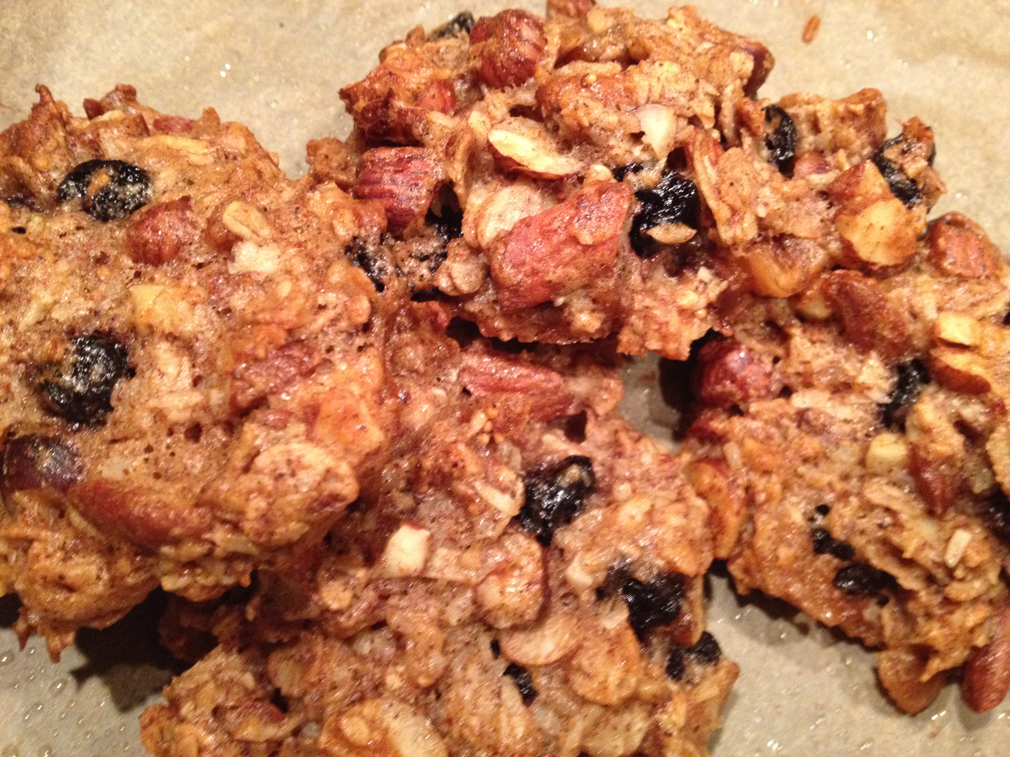 Rör sedan ner de blöta ingredienserna i de torra och blanda ordentligt men försiktigt. Smörj ett bakplåtspapper (jag tog kokosolja) Klicka ut 12 st kakor (ca 2 matskedar per kaka) och sedan in i ugnen i 12-15 minuter i 175 grader tills de har stelnat och fått färg!