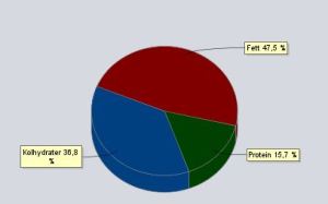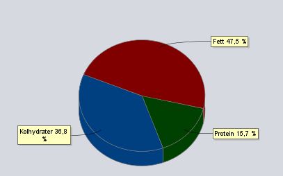74 kcal st, 3,4 gr protein, 7,4 gr kolhydrater, 4,6 gr fett, rika på järn och kalcium