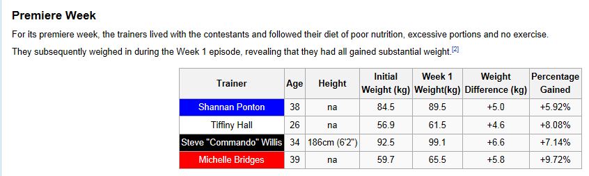 Eftersom jag nog i ärlighetens namn tyckte lite synd om mig själv igår så låg jag i soffan några timmar och tittade på Biggest Loser och virkade mormorsrutor. Ett av avsnitten var just invägningen av de australienska tränarna efter veckan de ätit ”skitmat”med deltagarna. Trots att de faktiskt varit på Biggest Loser Camp i några dagar OCH hunnit träna, trots att de såg VÄLDIGT snygga och vältränade ut, så hade fortfarande gått upp mellan 4.8-nästan 7 kg var. (Mycket vatten borde ha hunnit försvinna ur kroppen redan) Det låter löjligt men jag led med dem,  tränarna var chockade och gråtfärdiga. De uttryckte de som att de har behandlat sina kroppar som tempel  hela sina liv, de äter bara saker som är bra för kroppen och i deras värld ha blivit påtvingade att äta skit av BL-redaktionen och nu har de mååånga kg att gå ner och de skämdes. Jobbigt att stå i TV som fitness ikon och väga som Michelle (Rött linne på bilden), nästan  7 kg mer än vad hon i sin värld, borde väga.  Det VÄLDIGT roliga är nu att deltagarna får betala tillbaka tränarnas frustration och det är tufft i BL huset. Jag är nog lite av en sadist, kanske?