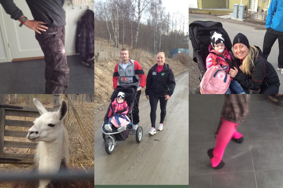 Hoppas att ni har en mysig dag framför er. Jag vaknade SUPERTRÖTT och istället för att lulla runt i gymmet med bomull i huvudet så gick jag en powerwalk nu och om jag är pigg/frisk under dagen så tar jag styrkan senare. Det är svårt att bedöma hälotillståndet när jag är sååå trött. När jag kom utanför dörren så hade  jag tur att bästa grannarna också var på väg ut, så jag fick sällskap idag. LUCKY ME! Rebecca och Daniel (Olivia är gullungen i vagnen)  är galet vältränade människor och Rebecca är mitt i klassikern just nu 🙂