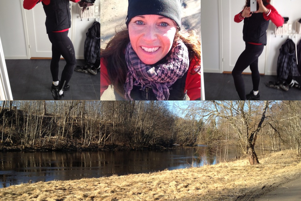 Vaknade jättetidigt men tack vare sommartiden så var det inte så tidigt:-) Klockan sju tog vi på oss löparkläderna men redan när jag gick nerför trapporna så kände jag att ALLT gjorde ont i kroppen. Gårdagen med powerwalk i rekordfart, ben/rumpa träning, 4-5 timmar springande upp och ner i slänten (jag och bästa grannen eldade upp allt gräs och vass längs våra 3 tomter (vi stöttade även grann-Maggan)) Jag var HELT FÄRDIG igår kväll, jag låg och kved och ville egentligen gå och sova redan kl åtta men fick noll stöttning för det.. 🙂 Mitt i allt i går så var det så mycket att göra att det gick ganska dåligt att få in mellisar mm så igår kväll var jag väldigt hungrig och sugen så lördagsgodis blev Ben & Jerrys.