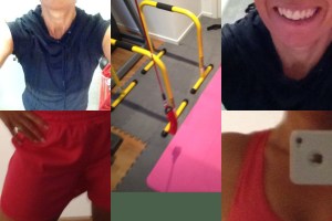 Mina nya 100 kr träningshorts 🙂 Maken gillar dem INTE…. Såhär rörigt och litet är gymmet när alla magredskap åker fram…