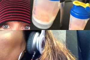 Min frukost idag åt jag stående på 2 minuter; havregrynsgröt med blåbär och 1 proteinshake + vitaminer. Jag har packat 2 mellisar och 1 nödmellis 🙂  1 shake med ½ grapefrukt i bitar med Kesella 1% och hemmagjord vaniljmusli i skruvbotten, 1 shake med 1 grönt äpple i bitar med Kesella 1% och chokladmusli och kanel i skruvbotten. Nödmellis = 1 tsk jordnötssmör. Jag kommer nog att vara extra hungrig idag för jag är ovan att cykla, förr gjorde jag ju det varje dag.
