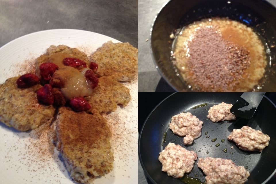 h psylliumfrön (min mage älskar dessa) och kanel. Gegga runt och stek i små plättar några minuter per sida:) MUMMA!