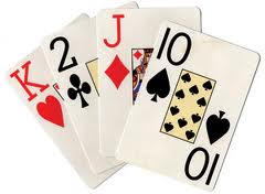 Om du får en hjärter 8 så gör du 8 utfall, tar ett nytt kort. Spader Kung – 14 stycken squats osv. Ganska kul sätt att köra hårt utan redskap och vart som helst:)