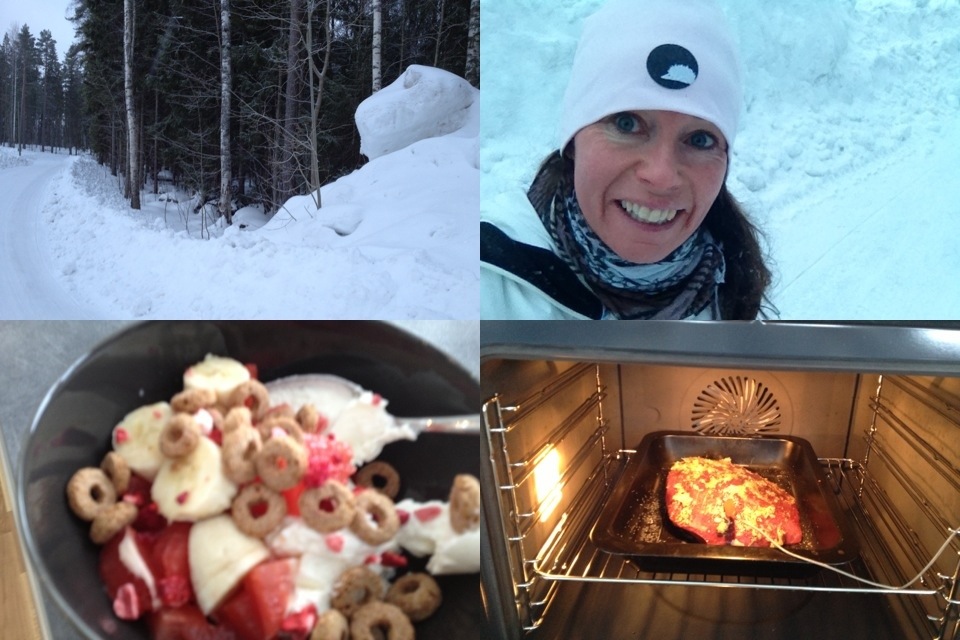 Idag säger kroppen att den inte vill vara med om något jobbigt så då blir det så. Istället för tuff cardio så tog jag en promenad med maken på snöiga vägar. Det är skönt att få den tiden tillsammans ibland, hinna landa i all stress och press och prata till punkt om allt och inget.