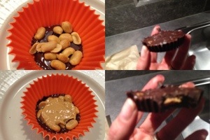 Jag bakade proteinbrownie som inte var så god så då gjorde jag en chokladgodis:-) Micra 1 ruta mörk choklad i silikonform, lade ner några jordnötter och 1 tsk jordnötssmör. På med 1 hackad ruta choklad igen och micra och låt sedan kallna.