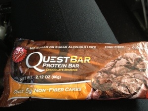 Igår när jag flög hem så var jag tokhungrig, och jag visste att efter jag landat så har jag ytterligare 2 timmar i bilen. Jag hade skickligheten 🙂 att ha packat en Questbar i datorväskan och denna gången av smaken Brownie – JÄTTEGOD!!