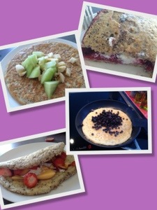 Frukost är nästan alltid proteinrika pannkakor m frukt/bär.