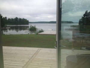 Härliga morgonträningen är avklarad! Jag står vid köksbänken (spanar på fåglar genom fönstret) och äter frukost. Underbar proteinpannkaka med banan, jordgubbar och melon.