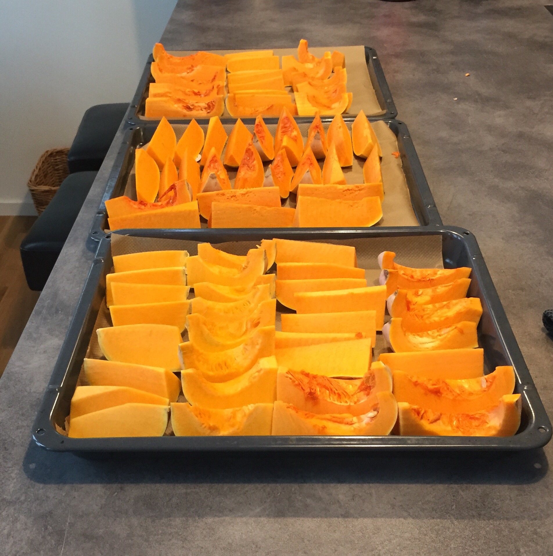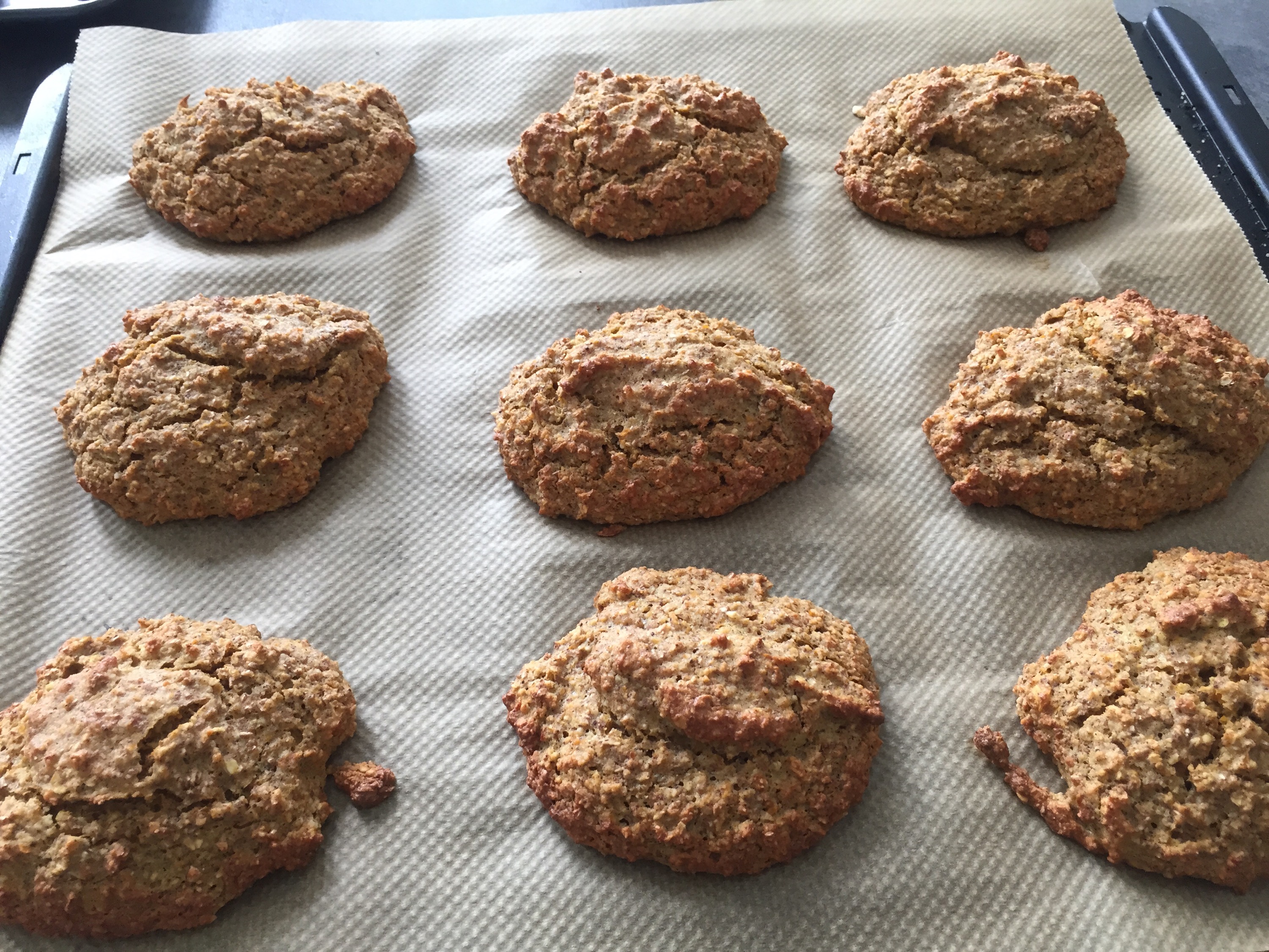 Kör allting i matberedare. Klicka ut på bakplåtspapper och kör i ugnen i ca 15 min i 200 grader.