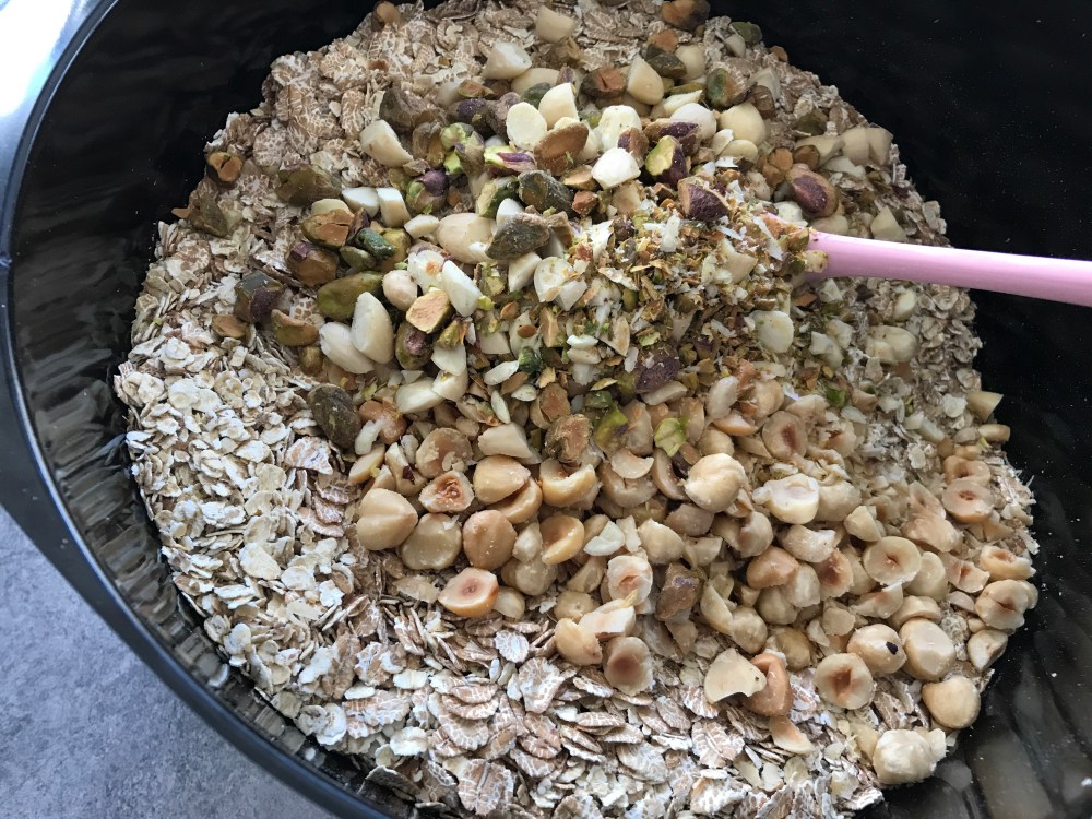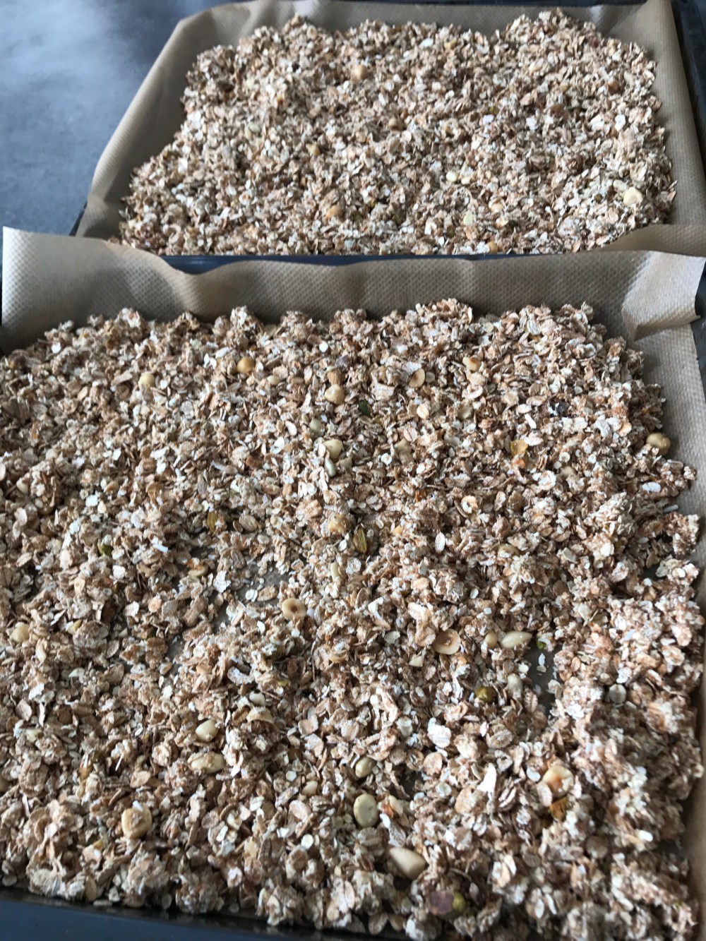 4 laddningar med Granola är klart! För en laddning (jag gjorde alltså x 4):