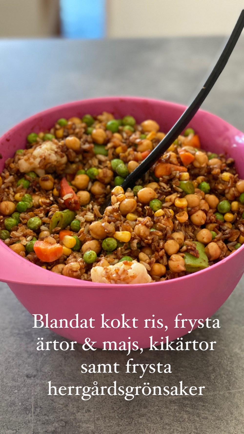 - Kokt ris (jag kokar och lägger i frysen och tar fram för detta ändamål)