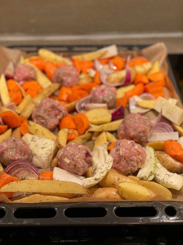 Dagens middag var supergod och superenkel. Allt i ett på en plåt.